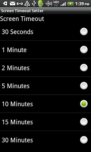 Simple app to allow you to edit your screen timeout setting, which controls how long you can be idle before your screen locks. Timeout can be set to 30 seconds, 1, 2, 5, 10, 15 or 30 minutes.